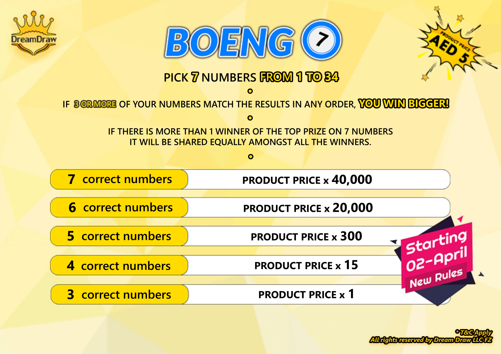 Product Prize: The cost of participating in BOENG 7 is AED 5.